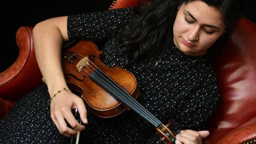 Mina spiller på en gammel, italiensk violin fra 1800 af ukendt bygger, som blev doneret til hende i 2023 af Søren P. Sørensens mindelegat.